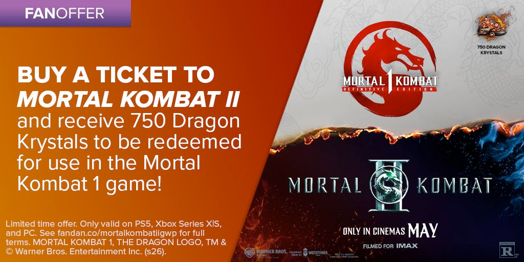 Enjoy this flawless victory! Buy a ticket to Mortal Kombat II and for a limited time receive 750 Dragon Krystals to be redeemed for use in the Mortal Kombat 1 game!