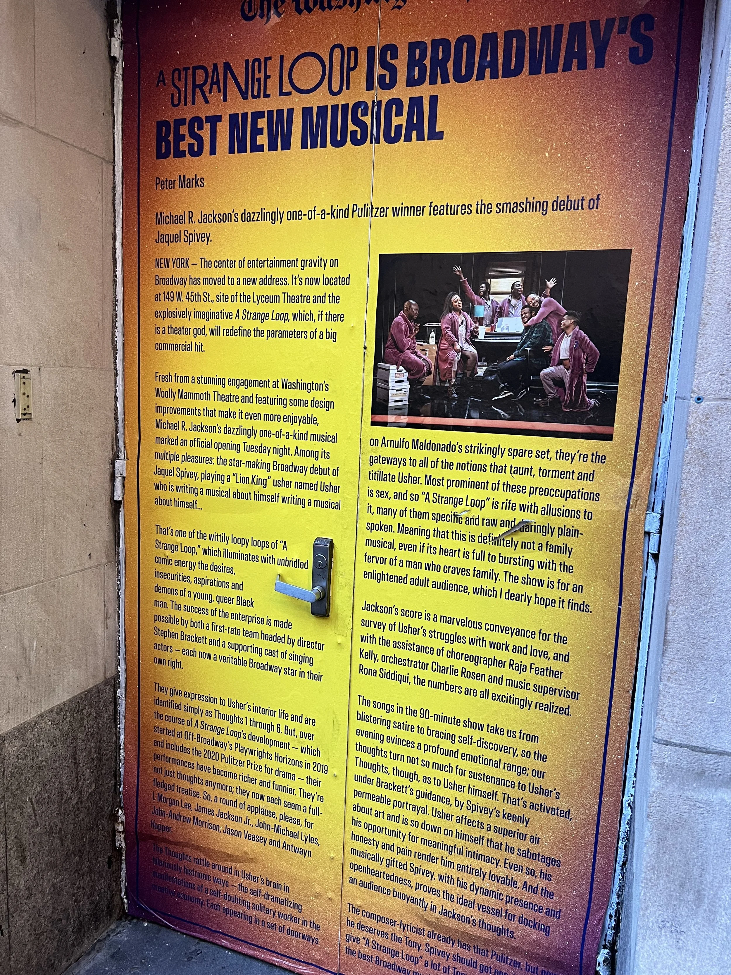 For starters, the folks behind A Strange Loop - notably on the PR side - deserve amazing applause and a standing ovation with ample smiles and kisses being blown. Thank-you for sliding into my Gmail DMs a.k.a. inbox with these fun tidbits on the must-see Broadway production of the year and allowing me to take a guest with me to witness what the theatrical crowds already raved about.