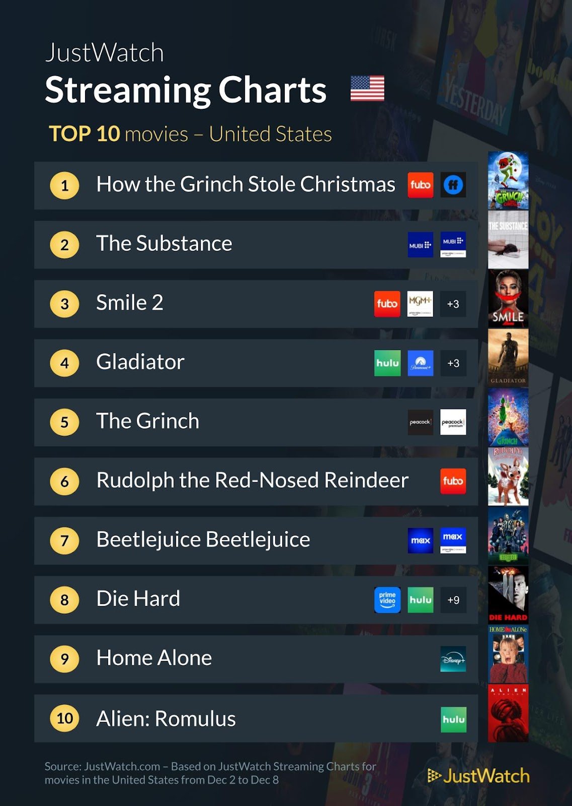 This week we decided to highlight our list of the best Christmas comedy movies and where you can stream them in the US. This week, both “Home Alone” and “How the Grinch Stole Christmas” ranked on our weekly US Streaming Charts. Check out the full list here: https://www.justwatch.com/us/guide/christmas-comedy-movies